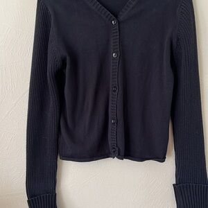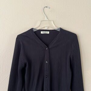 Eddie Bauer Cotton Sweater Cropped Long Ribbed Sleeves Buttoned Size Medium