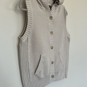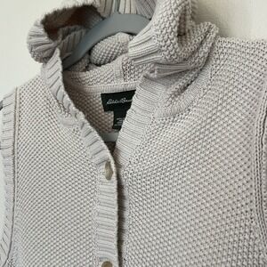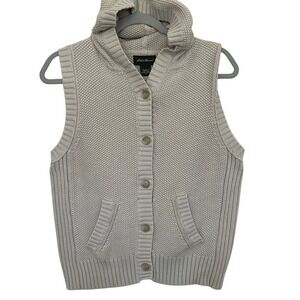 Eddie Bauer Cream Cardigan Sweater with Ribbed Knit minimalist neutral women L
