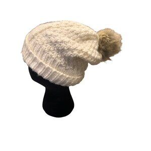 Eddie Bauer Cream Colored Waffle Knit Pom Beanie