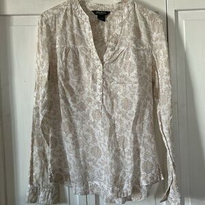 Eddie Bauer Cream Long Sleeve Buttoned Pull-Over 100% Cotton Size S