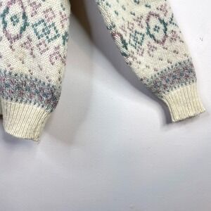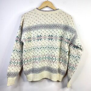 Eddie Bauer Cream Patterned Crew Neck Sweater
