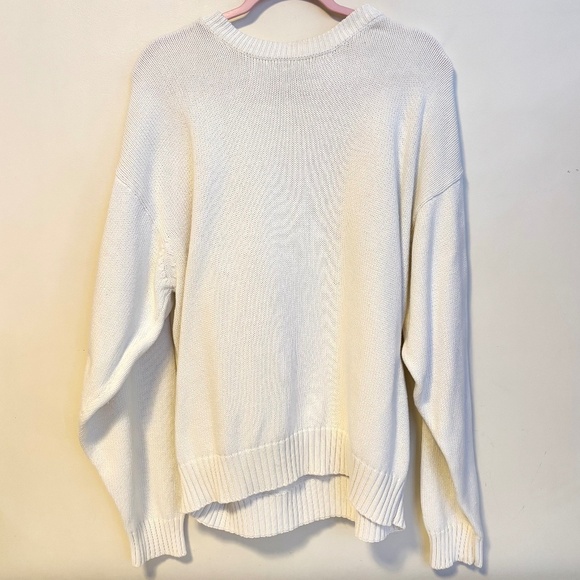 Eddie Bauer Crewneck 100% Cotton Knit Long Sleeve Sweater White Mens Size Large