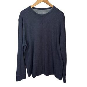 Eddie Bauer Crewneck Shirt Pullover Mens 2XL Waffle Knit Activewear Blue Comfort