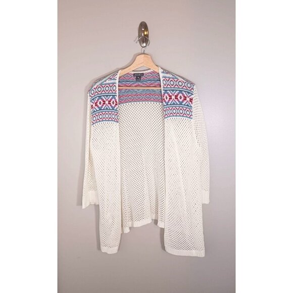 Eddie Bauer Crochet Coastal Beach Boho Open Cardigan Linen Blend Women's Size 2X