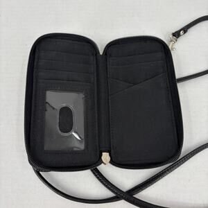 Eddie Bauer Crossbody Travel Wallet Bag Black Leather Zip Around Mini