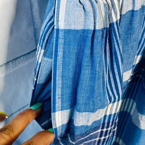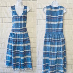 Eddie Bauer Denim Blue Plaid Button Down Dress