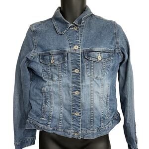 Eddie Bauer Denim Jacket Women Size M Blue Cotton Blend Y2K Trucker Casual