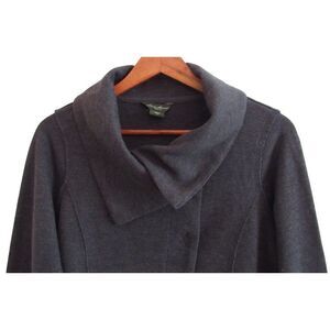 Eddie Bauer Dk Gray Moto Raw Edge Cardigan Sweater Snap Front Cowl Neck Jacket M