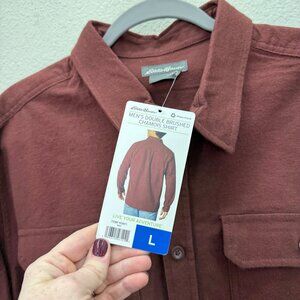 Eddie Bauer Double Brushed Chamois Red Flannel Button Up Shirt Mens sz Large NEW