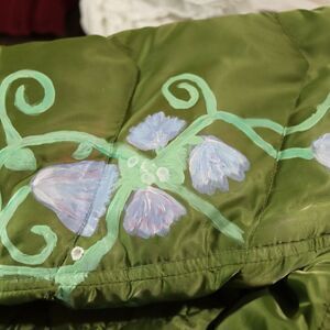 Eddie Bauer Down Green Puffer Goose Down Warm Jacket Upcycle Painted Coat XS