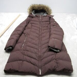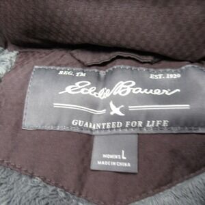 Eddie Bauer Down Jacket Womens Large Brown Faux Fur Hood Trim Full Zip Puffer