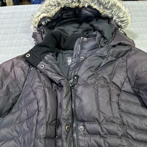 Eddie Bauer Down Jacket Womens Small Deep Purple Faux Fur Trim Quilted Puffer