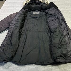 This jacket is in nice shape, no visible flaws. The faux fur trim is removable as well at the entire hood.