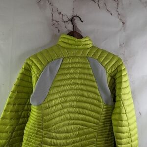 Eddie Bauer Down Puffer Jacket Womens XS Yellow Gray Neon Coat Hood 800 FP