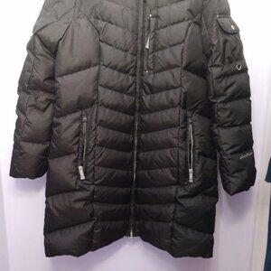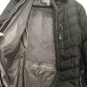 Eddie Bauer Down Puffer Parka Long Winter Coat Size Large Black Removable Hood