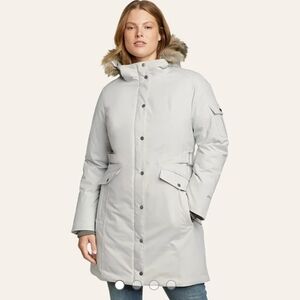 Eddie Bauer Down Stadium Parka Coat WeatherEdge Women's Large Gray Fur Hood