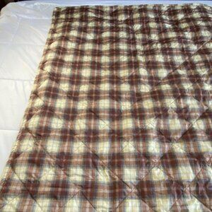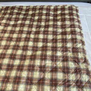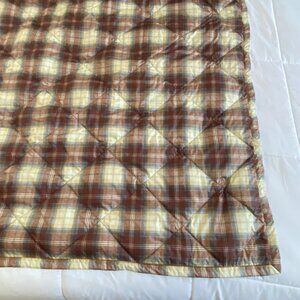 Eddie Bauer Down Throw Blanket Fleece Backing Brown Plaid 51"x71" Camping Lodge