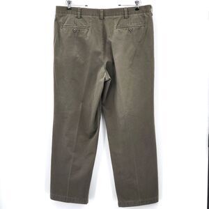 Eddie Bauer Dress Pants 40x30 Khaki Drab Olive Green Mens Pleated Front Straight Leg Cotton