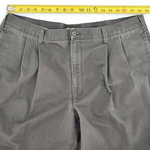 Eddie Bauer Dress Pants 40x30 Khaki Green Mens Pleated Front Straight Leg Cotton
