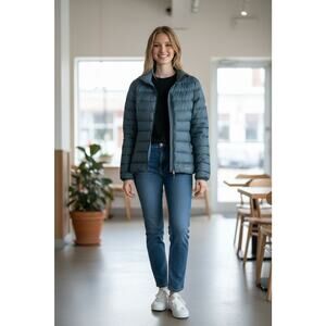 Eddie Bauer EB650 DOWN Puffer Cirrus Lite Jacket Packable Women Sz L Teal Blue Gorpcore Outdoors Sporty Cozy Lightweight