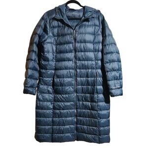 Eddie Bauer EB650 Down Jacket Womens XL Blue Long Puffer Hooded Lightweight Coat