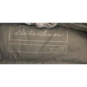 Eddie Bauer EB650 Down Puffer Jacket Womens PXS White Splatter Hooded Parka Coat