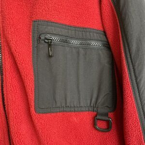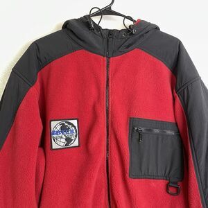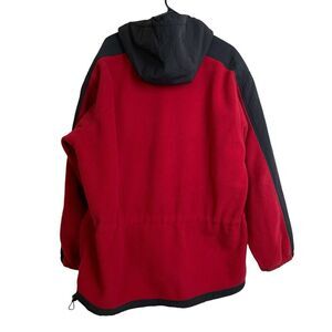 Eddie Bauer EBTEK Fleece Jacket Mens Size Large Red Black Vintage Hood Zip 90s