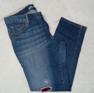 Eddie Bauer EUC Plaid Patch Relaxed Fit Boyfriend Jeans size 14
