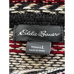 Eddie Bauer Fair Isle Christmas Black Sweater Size Large Winter Holidays Festive