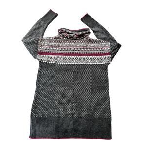 Style: Nordic fair isle Christmas long sleeve, cowl neck with drawstring tunic sweater