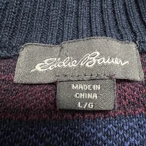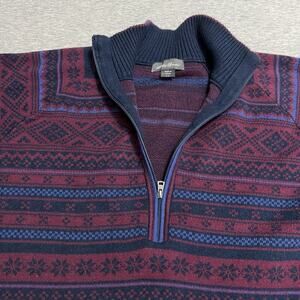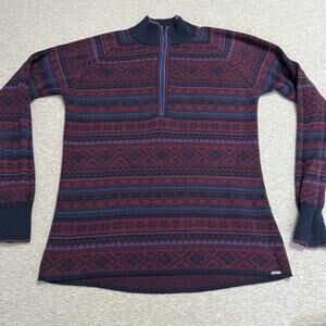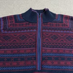Eddie Bauer Fair Isle Nordic Sweater Womens Large 1/2 Zip Blue Colorful Cotton