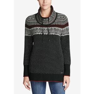Eddie Bauer Fair Isle Pullover Sweater Cowl Neck Drawstring Ivory Wool Blend M
