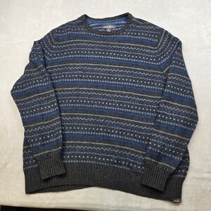 Eddie Bauer Fair Isle Sweater Mens 2XL Blue Gray Wool Blend Crewneck