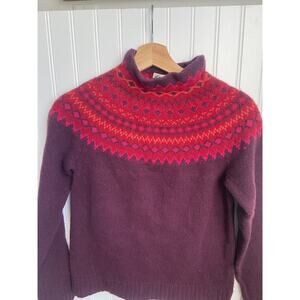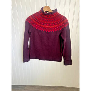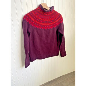 Eddie Bauer Fair Isle Wool Sweater Women's Size XS Pink Long Sleeve Mock Neck