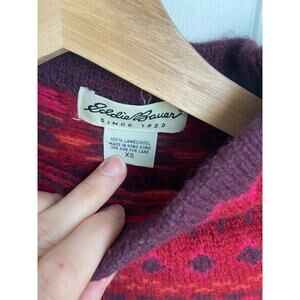 The Eddie Bauer Fair Isle Wool Sweater in women's size XS is a stylish and cozy option for the colder seasons. Made from tight-knit wool fabric, this sweater features a vivid pink color with a classic Fair Isle pattern. The mock neck and long sleeves provide extra warmth, making it perfect for casual occasions in winter, fall, or spring. With a regular fit and a pullover style, this sweater from a trusted brand like Eddie Bauer is sure to become a versatile staple in any woman's wardrobe.