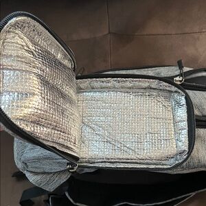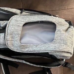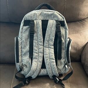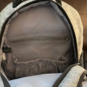 Eddie Bauer backpack with sleek design. Features multiple compartments. Ideal for daily use. Used condition. Great for use as a diaper bag. Side pocket for wipes container.