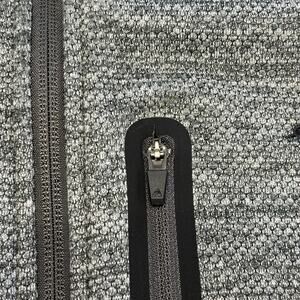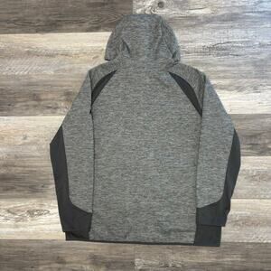 Eddie Bauer First Ascent Cloud Layer Heather Gray Black Mens 2XL Hybrid Full Zip Knit Textured Hoodie Jacket Pre-owned condition. Please note that the item has very small tear near the zippered pocket chest, gray heather colorway with solid trim panels on each side quick dry moisture-wicking technology hygiene odor control protection secured zip chest pocket 3-piece hood, lightweight hiking fall hoodie travel activewear performance outdoor. ID # 1297