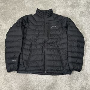 The Eddie Bauer First Ascent Down Jacket in Black, Size Small, is a high-quality puffer jacket designed for men. Made with a durable nylon outer shell and insulated with warm down feathers, this jacket is perfect for outdoor adventures in colder weather. The sleek black design and Eddie Bauer branding add a stylish touch to this functional and practical piece of outerwear. Ideal for everyday wear or outdoor activities, this jacket is a versatile and essential addition to any wardrobe.