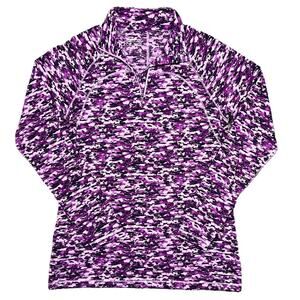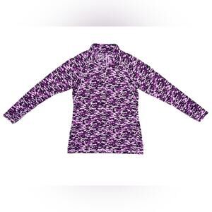 Previously loved in excellent condition, very light wear with lots of life left. Pink/purple/white camo, quarter zipper, thumb holes at the end of sleeves for optimal workouts, women’s size M (across 18.5“, long 27.5“, sleeve inseam 20“)