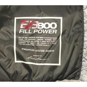This auction is for a zipper front insulated jacket/coat by Eddie Bauer First Ascent. There is no size tag but it measures as a medium. Measurements: about 23.5 inches armpit to armpit and about 27 inches from top of collar to bottom hem. Shoulder seam to end of cuff is 26 inches. It has a full zipper front and two side waist zipper pockets. The material is 100% polyester shell and 100% nylon lining with goose down insulation (minimum 90% down). Inside tag says EB800 Fill Power. This coat is in excellent used condition other than the left pocket pull material part is damaged but does not affect opening or closing pocket.