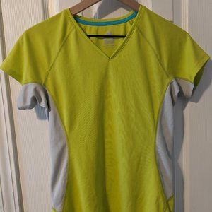 Eddie Bauer First Ascent Performance Athletic T-Shirt - Women's Small - Fluorescent Highlighter Yellow Chartreuse/White - 50% Recycled Polyester, 50% Cocona Polyester - V-neck