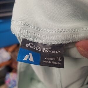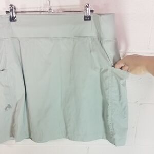Eddie Bauer First Ascent athletic mini skort pull on skirt skort with built in liner womens size 16 light icy mint color 21251002 waist across 19 length 18 side stash pockets outdoor hiking gorpcore bin 19