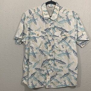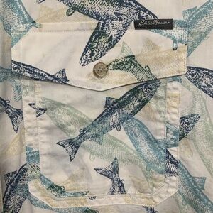 Eddie Bauer Fish Print Short Sleeve Button Up Shoulder Vented Shirt