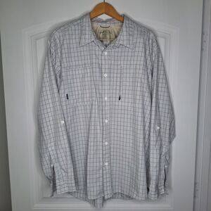 Eddie Bauer Fishing Shirt Mens XL Gray Checkered Vented Outdoors Pockets