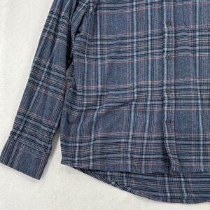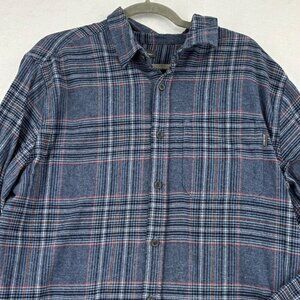 Eddie Bauer Flannel Shirt Mens XL Blue Plaid Button Up 100% Cotton Chest Pocket