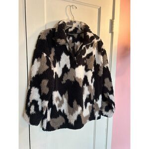 Eddie Bauer Fleece Camo Sherpa Fleece Pullover Jckt Sz Women's Large 1/4 Zip
