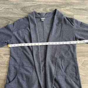 Eddie Bauer Fleece Camp Long Sleeve Cardigan Sweater Blue Size Small. Excellent condition. Side pockets, thumb holes, fleece lined, round lapels, long sleeves.