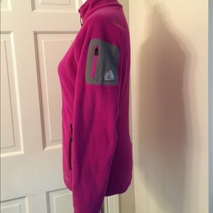 Pink; Polartec Fleece (100% polyester); light weight warmth layers well; packs easily; machine wash, tumble dry low. Excellent used condition!!