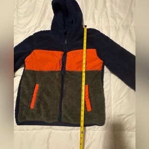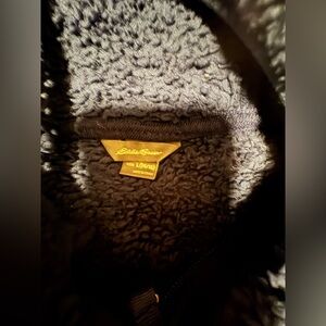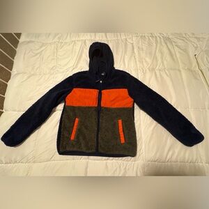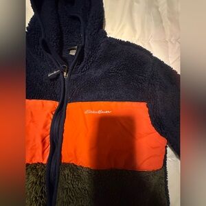 Eddie Bauer Boys L 14-16 Full Zip Hooded Fuzzy Fleece Jacket Blue Grn