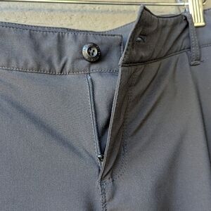 Excellent preowned condition fully fleece lined straight leg cargo pants from Eddie Bauer. Monochromatic black. Zipper fly and button closure. Belt loops. Secure side zipper pocket. Shell 90% polyester 10% spandex. Lining 100% polyester. Very warm. Machine washable. Clean. No flaws.